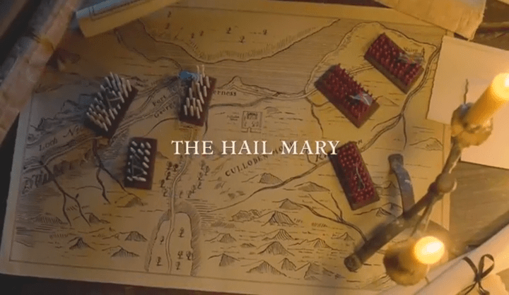 Well, Poncey goes for it and says “I will bring Cumberland my best bottle of wine, just to see his reaction when he’s my prisoner. And the plan is in place. Later that night, they will go ahead and march the twelve miles to Nairn and attack at dawn. And it hits me that this is the last Mark Me of the season. (I hope)